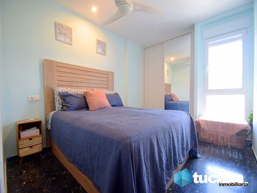 Extras: La vivienda está dotada de ventiladores con mando automático en todos los dormitorios y cuenta con un split (frío-calor) en el salón comedor. El acristalamiento de la terraza es de puente térmico, ideal para los días de invierno en Santa Pola. La cocina se reformó hace 2 años, todo de diseño moderno. El baño en suite se reformó recientemente, acorde con la decoración de la vivienda. Se ha renovado recientemente todo el mobiliario, todo de diseño, de calidad, acorde con el diseño mediterráneo de la zona.