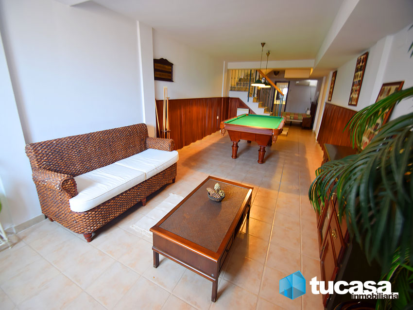Sótano: En el sótano está dividido en varios ambientes, tiene un segundo salón ideal para la época de verano, muy fresquito, al estar enclavado en la roca viva actuando como las casas cuevas. Tiene una zona de salón, junto a un maravilloso billar, de calidad, ideal para disfrutar en familia o amigos. Tiene un tercer dormitorio con un armario tipo vestidor con grandes acabados en madera natural. Cuenta con un baño de servicio, amplio, ventilado, con un gran plato de ducha.